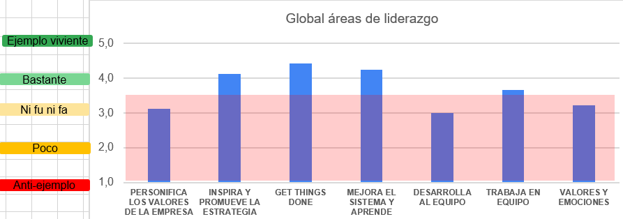 Dado que se permite una valoración «neutra» (ya que un comportamiento puede ser «a veces sí, a veces no», puede no haber una respuesta clara en positivo o negativo), se considera que un mánager lo está empezando a hacer «bien» cuando está cerca del 4 (a partir de una valoración de 3.5).
