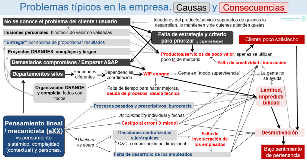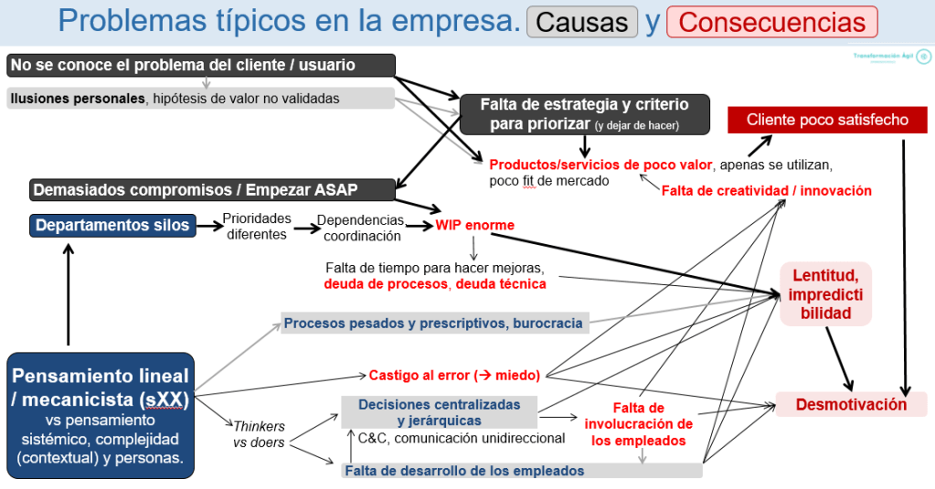 Como principales causas organizativas de falta de agilidad, entre otras podemos encontrar: