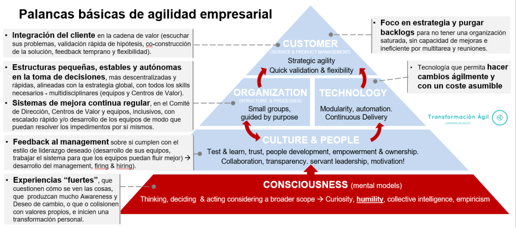 A continuación se muestran siete palancas básicas de business agility, fruto de diversas experiencias de transformación: